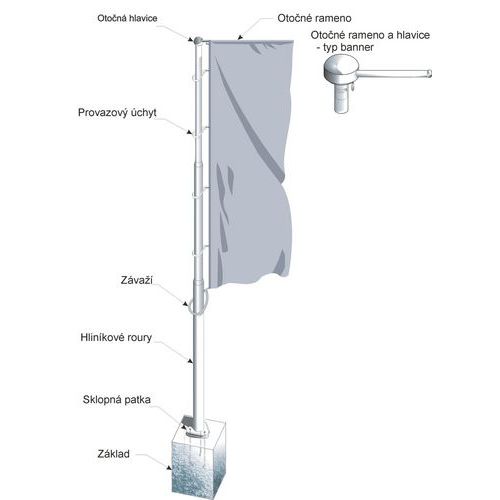 Aluminiowe maszty flagowe z ramieniem obrotowym i składaną stopą, 5–10 m Aluminiowe maszty flagowe z ramieniem obrotowym i składaną stopą, 5–10 m