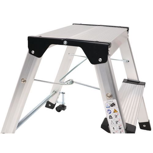 Składany stopień aluminiowy z dwoma stopniami Prążkowane, antypoślizgowe stopnie dla wygody użytkownika Łatwe przemieszczanie dzięki czterem samonakręcającym się kółkom. Maks. obciążenie (kg) : 150 kg Gwarancja producenta dla klienta : 10 lat