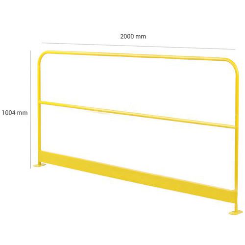 Stalowe barierki umożliwiające wydzielenie przestrzeni oraz ochronę pieszych przed maszynami i pojazdami. Wyraźny żółty kolor RAL 1023 zapewnia dobrą widoczność. Wykonane z profili stalowych o średnicy 28 mm. Cokół zapewniający wyższą stabilność barierki. Mocowanie do podłoża za pomocą nawierconych otworów na płytkach.
