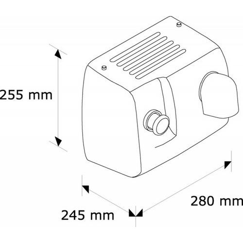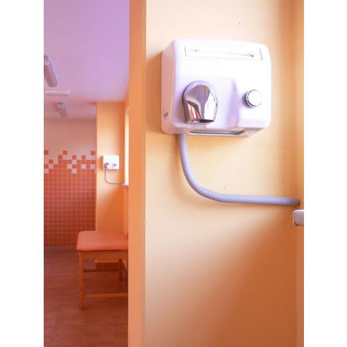 Suszarka ścienna do włosów przeznaczona do pomieszczeń szatniowych w kompleksach sportowych i basenowych. Metalowa osłona w matowej, połyskliwej lub białej wersji z porcelanową glazurą. Czas jednego cyklu suszenia wynosi 90 sekund, uruchamianie suszenia za pomocą przycisku sterującego. Temperatura suszenia 53°C. Stopień ochrony IP 23.