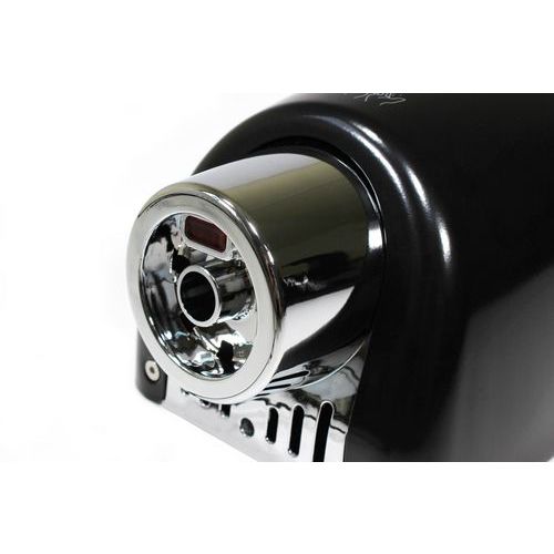 - Strumień powietrza jest wyprowadzany z suszarki przez wyraźną chromowaną duszę o kulistym kształcie.