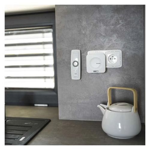 - Dzwonek zasilany z gniazdka, po sparowaniu przycisk wystarczy przymocować za pomocą dwustronnej taśmy klejącej (w zestawie) w dowolnym miejscu.
