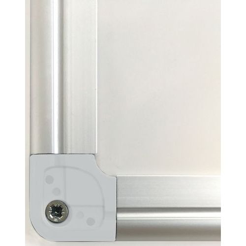 Białe tablice do zapisywania, z powierzchnią magnetyczną. Płyta tablicy ze stali lakierowanej. Aluminiowa rama z narożami plastikowymi. Ścierane na sucho za pomocą gąbki magnetycznej lub ściereczki. Plastikowa listwa do odkładania markerów i gąbki mocowana do ramy.