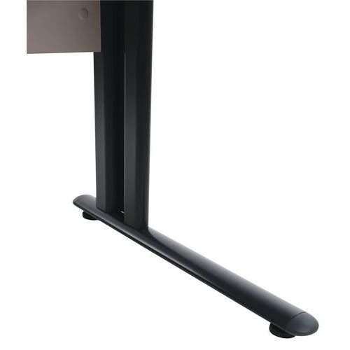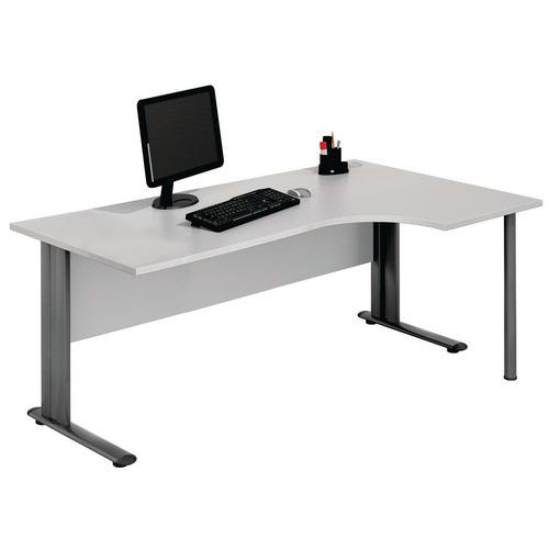 Biurka Manutan Expert z blatem z płyty melaminowej o grubości 25 mm i metalową podstawą.
