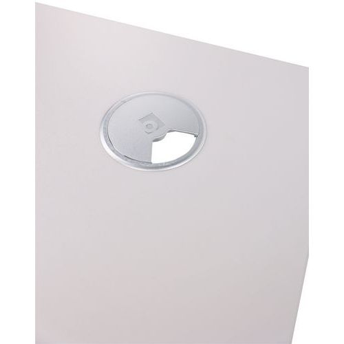 Stół w blacie znajduje się otwór o średnicy 80 mm do prowadzenia kabli.