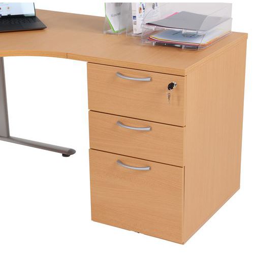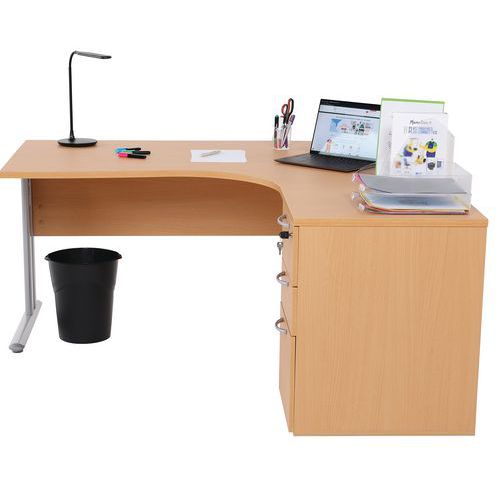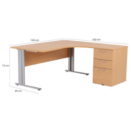 Biurko Manutan Expert z pojemnikiem, 72 x 160 x 160 cm, projekt prawy, buk