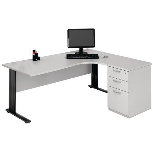 Biurka biurowe Manutan Expert z pojemnikiem, 72 x 160 - 180 x 160 cm, wersja prawa/lewa, jasnoszary