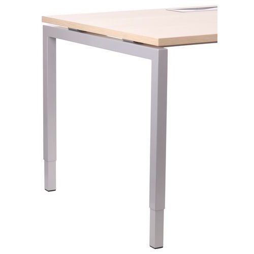 Misao to biurka biurowe o prostej konstrukcji z nogami w kształcie litery U z możliwością regulacji wysokości. Płyta górna wykonana z płyty wiórowej o grubości 25 mm pokrytej melaminą z obrzeżami ABS o grubości 2 mm. Blat z wycięciem do prowadzenia kabli. Łatwy montaż i demontaż . Gwarancja producenta dla klienta : 10 lat
