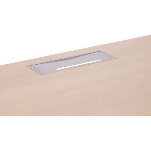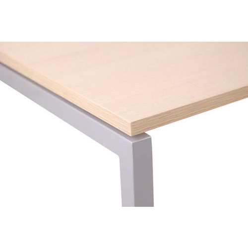 Misao to biurka biurowe o prostej konstrukcji z nogami w kształcie litery U z możliwością regulacji wysokości. Płyta górna wykonana z płyty wiórowej o grubości 25 mm pokrytej melaminą z obrzeżami ABS o grubości 2 mm. Blat z wycięciem do prowadzenia kabli. Łatwy montaż i demontaż .