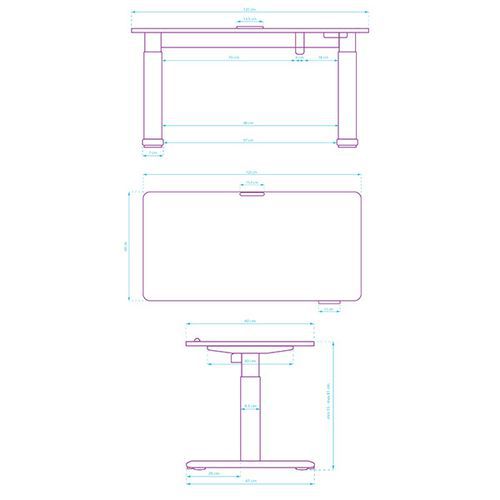 Biurka dziecięce Pulsar z elektryczną regulacją wysokości w zakresie 55–81 cm.