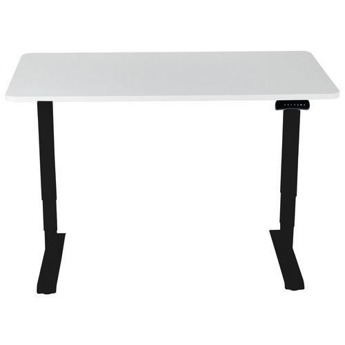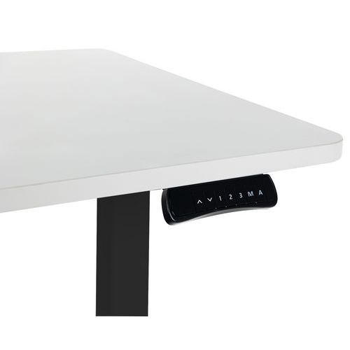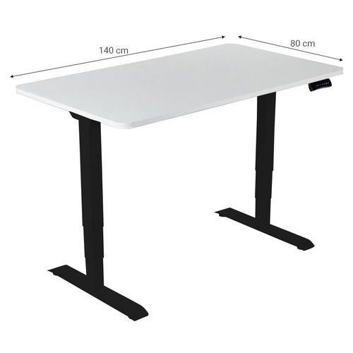 Biurko z regulacją wysokości Manutan Expert, podstawa czarna, szerokość 140 cm, kolor biały