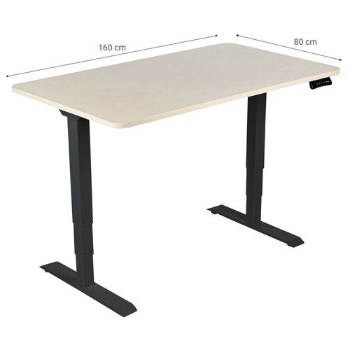 Biurko z regulacją wysokości Manutan Expert, podstawa czarna, szer. 160 cm, dąb