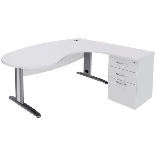- Dostawka półokrągła, dostępna w dwóch wariantach kolorystycznych. Metalowe nogi cylindryczne ze stopkami regulacyjnymi. Blat wykończony obrzeżem ABS.