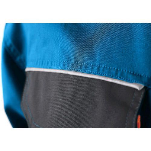 Męska bluza robocza, ramiona wzmocnione poliestrem 600D, rękawy z regulowanymi mankietami, kryty zamek błyskawiczny i napy, wielofunkcyjne kieszenie na piersi, boczne kieszenie zapinane na zamek błyskawiczny, regulowana talia, elementy odblaskowe. Zastosowanie zalecane: budownictwo, budowa maszyn, przemysł lekki, przemysł motoryzacyjny, logistyka, obsługa magazynowa, spedycja, usługi samochodowe, konserwacja, montaż, rolnictwo, ogród, hobby. Akcesoria odblaskowe: Tak Długość produktu: Klasyczna OEKO-TEX® STANDARD 100: Tak Rozmiar: 46-64