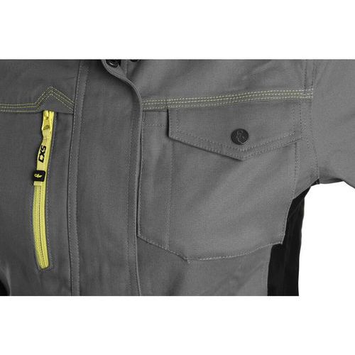 Damska bluza-kombinezon, rozciągliwa tkanina zapewniająca swobodę ruchów, ramiona wzmocnione poliestrem 600D, rękawy z elastycznym mankietem, kieszeń z patką na lewym rękawie, zapięcie na kryty zamek błyskawiczny i napy, kieszenie na piersi - zapinane na zatrzaski i zamek błyskawiczny, kieszenie boczne zapinane na zamek błyskawiczny, regulowana talia, wentylacja z tyłu, elementy odblaskowe. Zastosowanie zalecane: budowa maszyn, budownictwo, przemysł lekki, przemysł motoryzacyjny, logistyka, obsługa magazynowa, spedycja, usługi samochodowe, konserwacja, montaż, rolnictwo, ogród, hobby. Akcesoria odblaskowe: Tak OEKO-TEX® STANDARD 100: Tak Rozmiar: 38-58