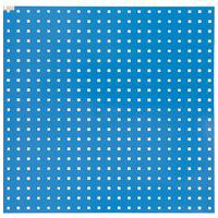 Panel perforowany do mocowania narzędzi i pojemników plastikowych. Wykonany z blachy o gr. 0,8 mm, powierzchnia wykończona lakierem proszkowym w kolorze niebieskim RAL 5012. Otwory kwadratowe 10 x 10 mm w odstępach co 38 mm. Nośność panelu 30 kg. Służy do powieszenia na ścianie. Głębokość panelu 25 mm wraz ze wzmocnieniami.