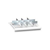 Przegrody umożliwiają dzielenie szuflad na maks. 72 przegródki. Podział szuflad odbywa się za pomocą zestawu plastikowych pudełek podzielonych przegrodami na cztery części. W trzech wysokościach do szuflad o wysokości minimum 75 lub 100 mm.