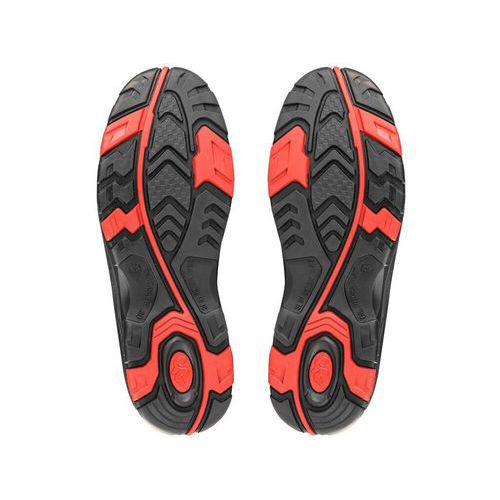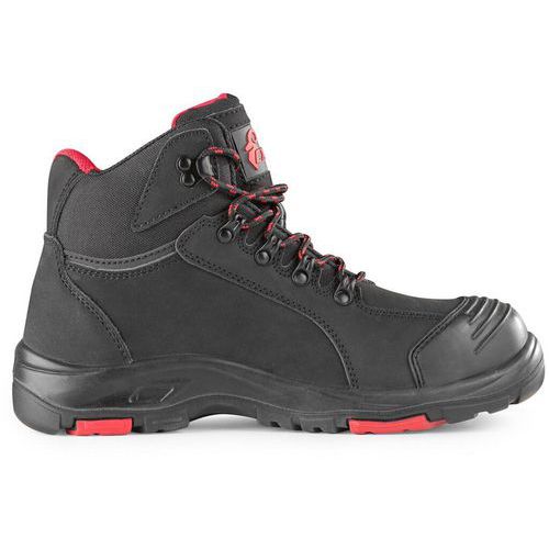Trzewiki ochronne z metalowym noskiem i podeszwą środkową, skórzane, z odblaskowym paskiem z PVC. Materiał: cholewka z hydrofobowej, gładkiej skóry nubukowej w połączeniu z dodatkami z PU, wzmocniona przednia część chroniąca przed przetarciami, oddychająca i odporna na ścieranie podszewka z materiału tekstylnego, podeszwa: PU/guma, antystatyczna, olejoodporna, antypoślizgowa, odporna na przebicie i ciepło kontaktowe do 300°C. Poziom ochrony: S3 Ochrona: Wzmocnione palce i podeszwa Akcesoria odblaskowe: Tak Rozmiar: 37-48