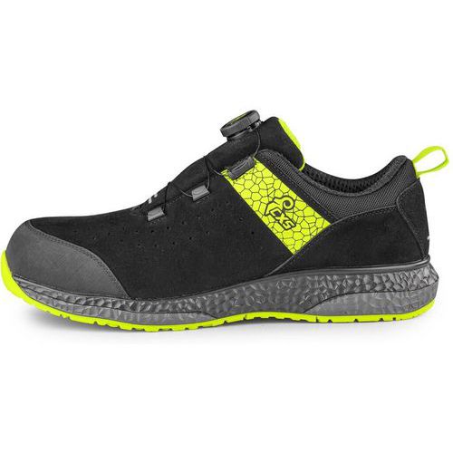 Wytrzymałe, wygodne i zaprojektowane do wymagających warunków. Ten niski but z ochroną ESD i elementami odblaskowymi wyróżnia się cholewką ze szczotkowanej hydrofobowej mikrofibry z perforacją dla lepszej oddychalności oraz specjalnym systemem ściągającym umożliwiającym szybkie zapinanie i rozpinanie buta. Podszewka z oddychającej siateczki i wkładka HI-POLY zapewniają maksymalny komfort przez cały dzień. Wzmocnienie pięty z mikrofibry i gumowa osłona palców zwiększają trwałość i odporność najbardziej obciążonych części buta. Cholewka jest szybkoschnąca i łatwa w pielęgnacji. Bezpieczeństwo zapewniają kompozytowy podnosek i tekstylna podeszwa. Podeszwa wykonana z połączenia poliuretanu i gumy zapewnia doskonałą stabilność i bezpieczeństwo – jest antypoślizgowa, antystatyczna, odporna na oleje i ciepło kontaktowe do 300°C. Ochrona: Wzmocnione palce i podeszwa Akcesoria odblaskowe: Tak Rozmiar: 37-48