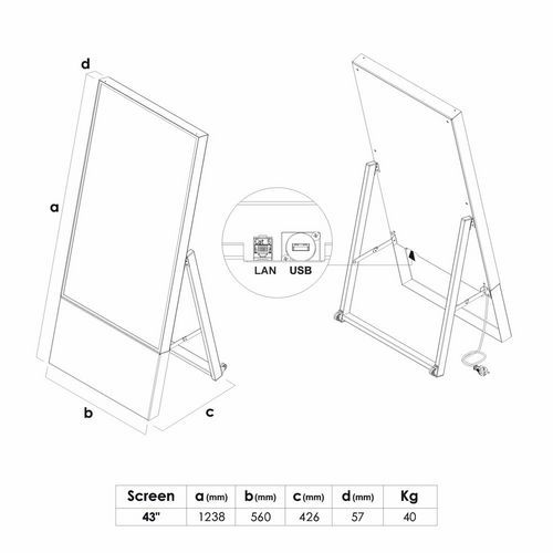 - Cyfrowy A-Board zaprezentuje Twoje menu lub ofertę w nowoczesnym i przyciągającym wzrok formacie.