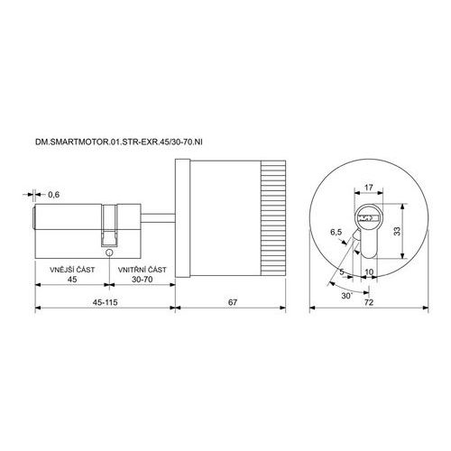 Silnik cyfrowy sterujący wkładkę patentową od strony wewnętrznej drzwi, 45/30-70 mm, nikiel