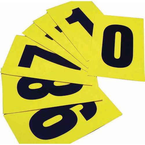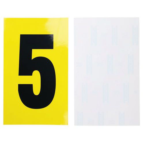Czarne cyfry na żółtym tle wykonane z winylu dostępne są w ośmiu różnych rozmiarach. Dziesięć cyfr 0 - 9 - wszystkie są dobrze widoczne i odznaczają się łatwością przyklejania. Po ściągnięciu nie pozostawiają śladów. Można je wykorzystać w biurze, magazynie oraz zakładach produkcyjnych. Opakowanie zawiera 10 arkuszy, każdy z liczbą etykiet zależną od ich rozmiarów. typ mocowania: samoprzylepny kolor: żółty materiał: tworzywo sztuczne liczba etykiet na arkusz: 1 - 168 opakowanie: 10 arkuszy