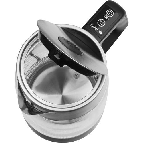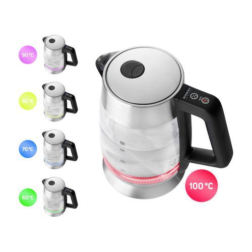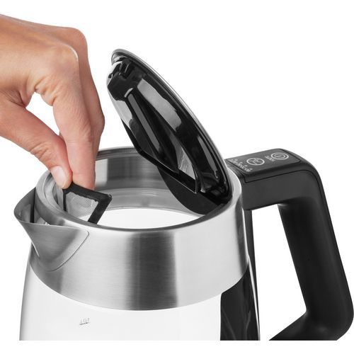 Wyciągany i zmywalny filtr przechwytujący zanieczyszczenia i osady, sygnalizacja dźwiękowa przy osiągnięciu wymaganej temperatury, dwustronny wodowskaz, dno grzejne ze stali nierdzewnej ze schowaną spiralą grzejną i podstawa z centralnym złączem 360°, z możliwością przechowywania kabla zasilającego.