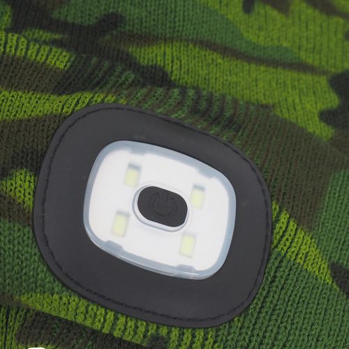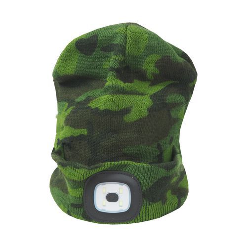 Czapka LED, rozmiar L, z latarką LED, zielony kamuflaż