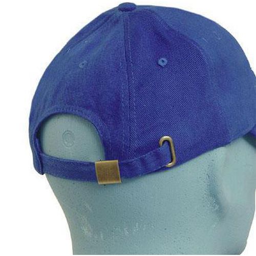 - Bawełniana czapka z daszkiem sześciopanelowa, z zapięciem na mosiężny klips i z obszywanymi otworami wentylacyjnymi. Czarny pasek wszyty w daszek.