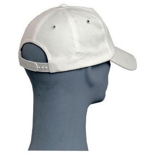 - Bawełniana czapka z daszkiem sześciopanelowa, z zapięciem na plastikowy klips i z obszywanymi otworami wentylacyjnymi.