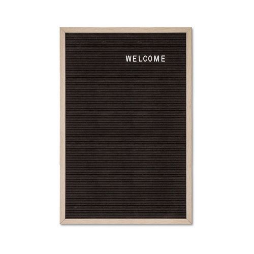 Czarna tablica na litery, brązowa rama, litery wsuwane