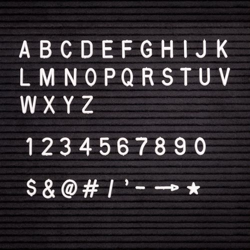 Czarna tablica na litery, brązowa rama, litery wsuwane