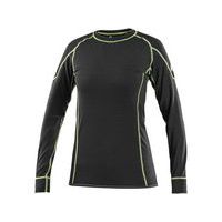 Damska funkcjonalna koszulka z długim rękawem w kolorze czarnym, z zielonymi elementami. Wykonana z materiału minimalizującego przykry zapach i utrzymującego świeżość. rozmiar: S, M, L, XL, XXL wersja: damska materiał: 92% poliester, 8% elastan, wewnętrzna strona miękko drapana gramatura: 230 g/m2 kolor: czarny, zielone elementy