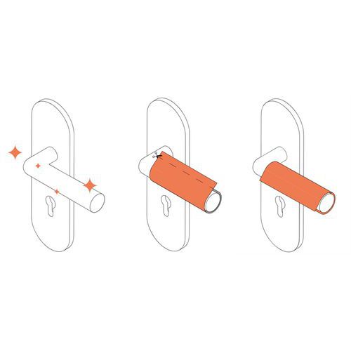 Taśmę można użyć na jakiejkolwiek gładkiej lub metalowej powierzchni – najczęściej stosuje się ją na klamkach drzwi, klamkach okien, poręczach wózków zakupowych czy innych uchwytach.