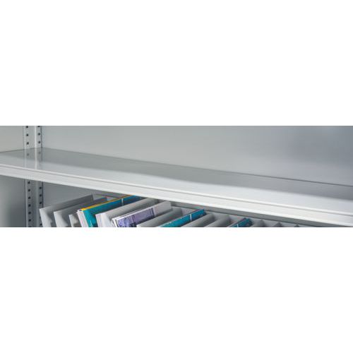 Ocynkowana stalowa półka do użytku z szafą na wyposażeniu.