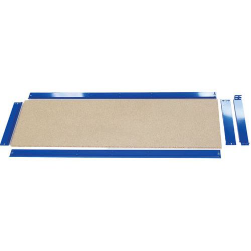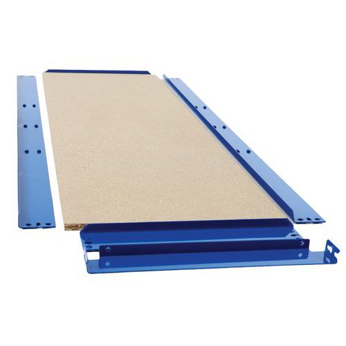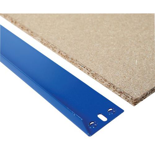 Dodatkowe półki z płyty wiórowej o nośności 440 kg do regałów Rapid 1. Łatwy montaż (za pomocą gumowego młotka). wymiary w x sz x gł: 3,1 x 152,5 x 45,5 - 61 cm materiał: płyta wiórowa nośność półki: 440 kg kolor: brązowy/niebieski RAL 5019 opakowanie: 1 szt. półki przestawne co 38 mm, pomalowana farbą proszkową, łatwy montaż