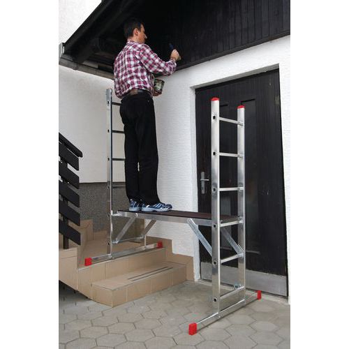 | Dane techniczne | Wysokość robocza (m): rusztowanie 2,8, drabina przystawna 1,51 - 3,31 , Wysokość całkowita (m): - |
