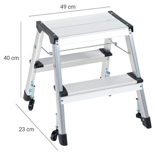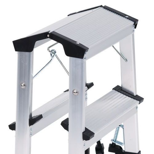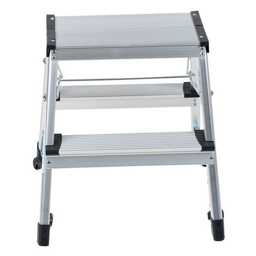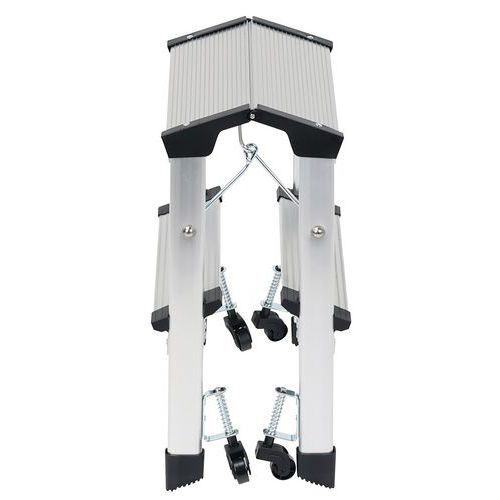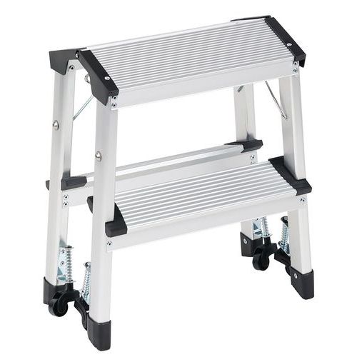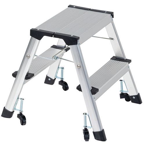 | Nazwa produktu | Drabinka aluminiowa dwustronna Manutan Expert z platformą, na kółkach, 2 x 2 stopnie |