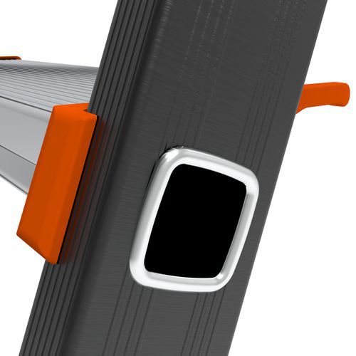 Dzięki stopniom o szerokości 110 mm, zawiasom z odlewów aluminium i wzmocnionym podłużnicom drabinki Kolos odznaczają się wytrzymałością i komfortem użytkowania. Profilowane, antypoślizgowe schodki z wytłaczanego aluminium. Jednoczęściowe zawiasy wykonane z żebrowanego, wysoce wytrzymałego odlewu aluminium. Uchwyt na narzędzia z zamknięciem. Podest 280 x 250 mm. 2 czarne pasy do modeli z 7 i 8 stopniami. Powłoka epoksydowa w kolorze antracytowo-szarym. Gwarancja producenta dla klienta : 5 lat Maks. obciążenie (kg) : 150 kg