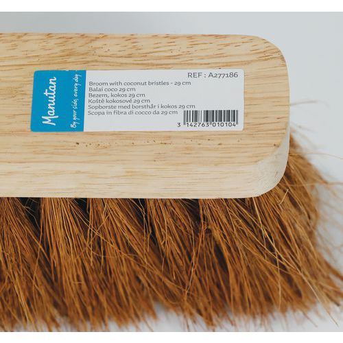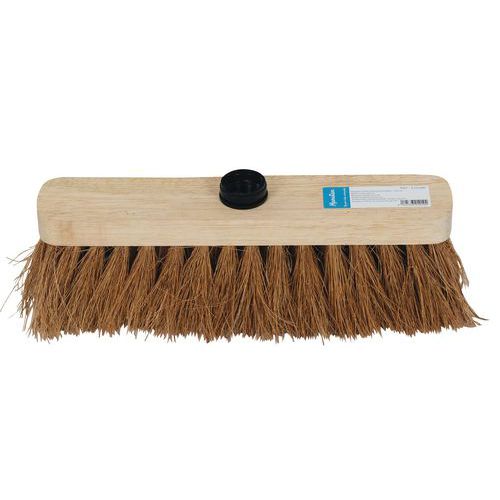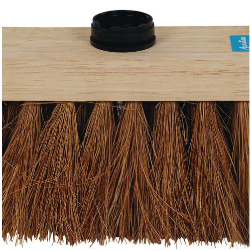 Drewniane miotły z włosiem kokosowym. Przeznaczone do szorstkich powierzchni. Kij wkręcany w gwint. W zestawie bez kija.