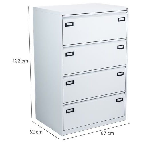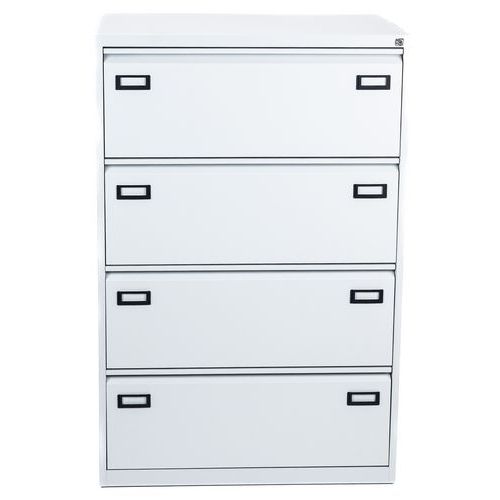Metalowe kartoteki z czterema szufladami, przeznaczone do biur, pokojów pielęgniarek itp. Dwa rzędy do przymocowania segregatorów zawieszanych w każdej szufladzie. Posiadają etykiety do umieszczania oznaczeń. Wyprofilowany przód szuflady służy jako rączka umożliwiająca łatwe otwarcie. Zabezpieczenie przed przewróceniem umożliwia otwarcie tylko jednej szuflady. Możliwość zamknięcia zamkiem centralnym na ramie. Gwarancja producenta dla klienta : 10 lat