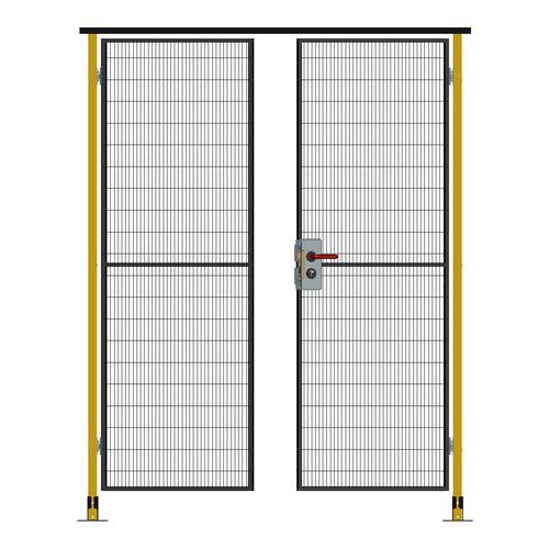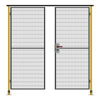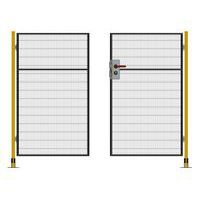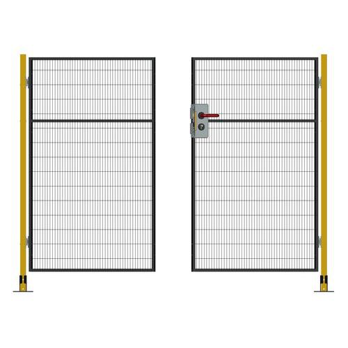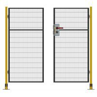 Kompletne dwuskrzydłowe drzwi na zawiasach z zamkiem cylindrycznym do systemu ogrodzeń ochronnych.