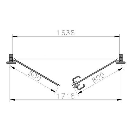 W zestawie znajduje się 2x słupek, 2x podstawa słupka, 2x ogrodzenie ochronne, 1x zestaw okuć, 1x podpora poprzeczna, 1x zamek cylindryczny oraz elementy montażowo-mocujące.