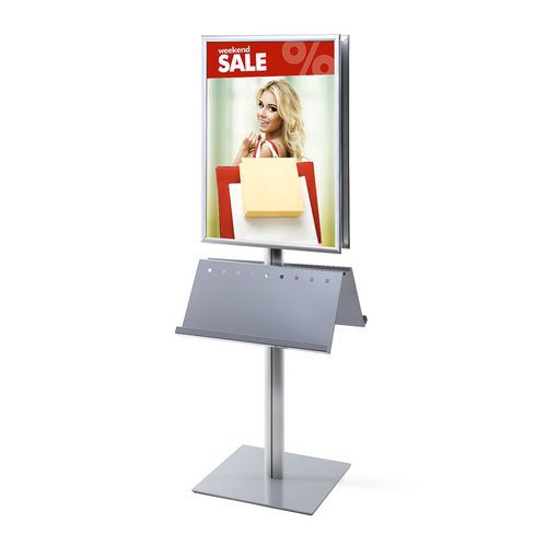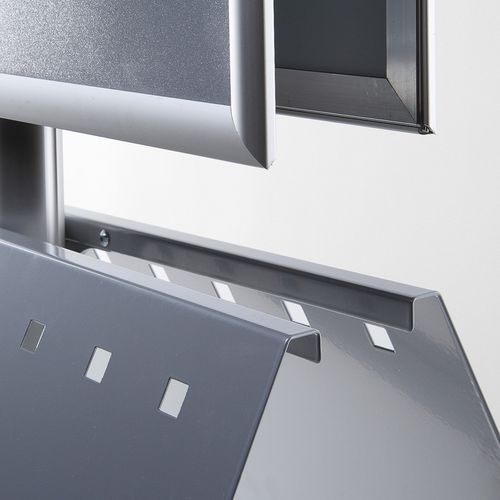 W części dolnej znajduje się przestrzeń do umieszczenia blaszanych kieszeni na broszury, katalogi i inne prospekty.