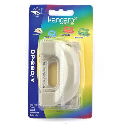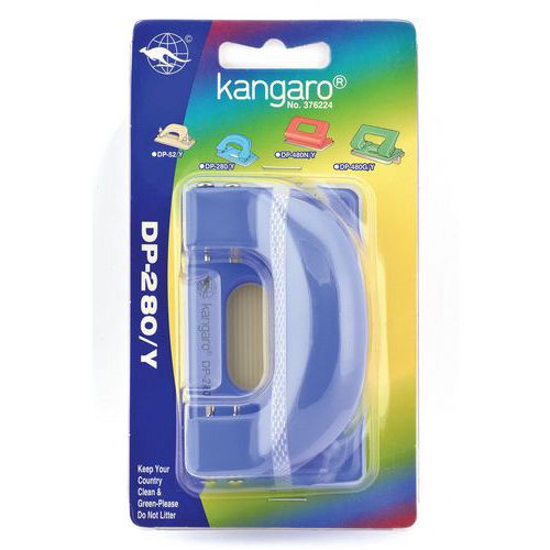 - Klasyczny mini-dziurkacz kangaro dp-280 w opakowaniu typu blister, wykonany w całości z metalu