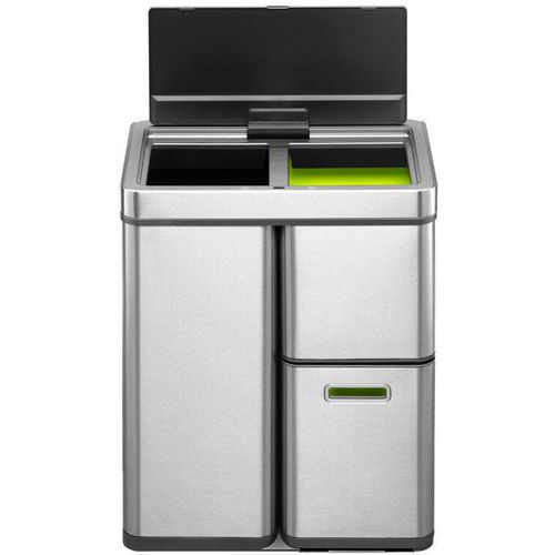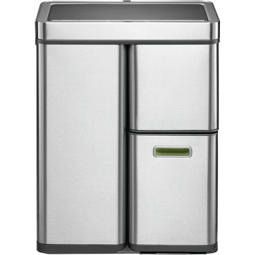 - Elegancki kosz do selektywnej zbiórki odpadów ze szczotkowanej stali nierdzewnej z wykończeniem zapobiegającym pozostawianiu odcisków palców.