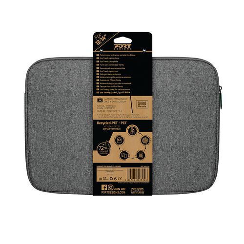 Bardzo lekkie, kompaktowe i ekologiczne etui na laptopy. Duża przednia kieszeń na zamek błyskawiczny zapewniająca szybki dostęp, idealna na ładowarkę, smartfon itp. W pełni wyściełana osłona zapewnia optymalną ochronę.