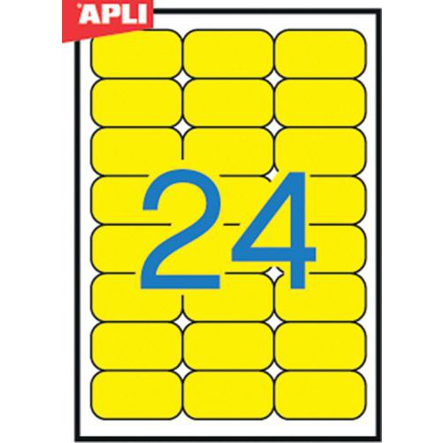Etykiety kolorowe APLI, 70x37mm, zaokrąglone, żółte, 20 ark.