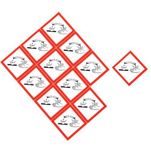 Tablice ostrzegawcze CLP Manutan Expert - żrące, samoprzylepne, 12 szt Tablice ostrzegawcze CLP Manutan Expert - żrące, samoprzylepne, 12 szt