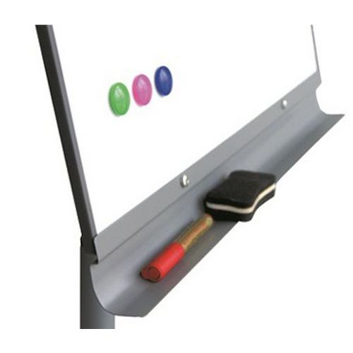 - Możliwość obracania i przemieszczania dzięki podstawie krzyżowej z pięcioma kółkami. Metalowa konstrukcja obejmuje listwę do odkładania markerów.